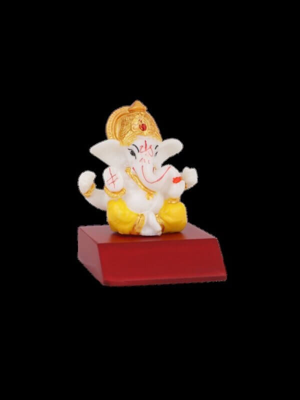 Elegant Resin Ganesha Idol on Wooden Base – Corporate Gifting (2.25 x 3 Inches)