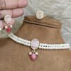 Grace your neckline with this Elegant Small Chandbali Pendant Set, a timeless design handcrafted by Hyderabad Jeweller, known for their exquisite pearl creations.